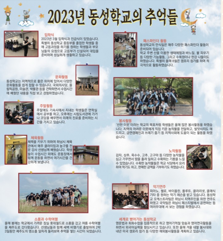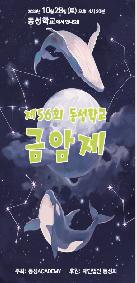 2023년 동성학교 금암제 페이지 정보 작성자 관리자 작성일23-10-25 09:44 조회24,067회 댓글0건 이전글 다음글 목록 본문 2023년 10월 28일 (토) 4시 30분 동성학교 금암제에 재학생 학부모님, 졸업생, 동성학교에 관심이 있으신 모든 분들을 초대합니다. 장소: 음악회(동성학교 강당), 전시회(동성학교 교실) 이전글 다음글 목록