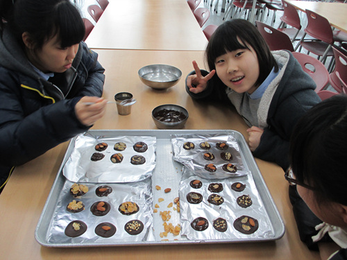초콜릿 만들기 페이지 정보 작성자 관리자 작성일14-02-19 21:41 조회5,275회 댓글0건 이전글 다음글 목록 본문 일요일 오전 여학생들은 신여정, 박유미 선생님과 함께 초콜릿 만들기를 하였습니다. 현미와 아몬드를 넣고 만든 초콜릿은 발렌타인데이에 남학생들과 선생님들께 선물하였습니다. 댓글목록 등록된 댓글이 없습니다. 이전글 다음글 목록